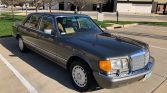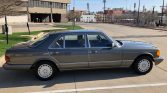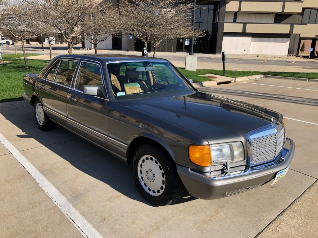 This 1988 Mercedes-Benz 420SEL was first delivered to Prestige Motors Limited in Kansas City, Missouri, and is finished in Anthracite Grey Metallic over Palomino leather. The car is powered by a 4.2-liter V8 paired with a four-speed automatic transmission. Equipment includes a sunroof, 15″ alloy wheels, power-adjustable front seats with memory, and a Becker cassette stereo. The seller acquired the car in 2018 and service since has consisted of replacing the shocks, suspension and steering components, engine mounts, and shifter bushings.