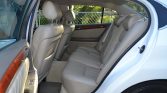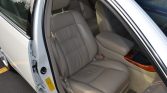 The cabin features seating trimmed in Ivory leather with matching carpets along with walnut wood veneers aLenting the center console and door panels. Amenities include heated and power-adjustable front seats, dual-zone automatic climate control, cruise control, Lexus-branded floor mats, a Nakamichi audio system, and an in-dash six-disc CD changer.