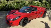 This 2006 Lotus Elise is finished in Ardent Red over a black interior, and power is provided by a 1.8-liter inline-four paired with a six-speed manual transaxle. Equipment includes a removable black soft top and a color-matched hardtop, air conditioning, a push-button start, and four-wheel disc brakes with cross-drilled rotors. Replacement tires were mounted, the engine computer received a software update, and a recall was performed on an oil cooler line in 2020.