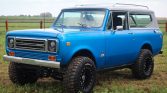 This 1978 International Harvester Scout is finished in metallic blue with a gray top over black vinyl and is powered by a replacement fuel-injected 5.3-liter LM7 V8 paired with a four-speed automatic transmission and a two-speed transfer case. Equipment includes a 4″ suspension lift, beadlock-style wheels, Mickey Thompson tires, LED lighting, an aftermarket rear bumper, air conditioning, power windows and locks, and a digital instrument cluster as well as an aluminum radiator, cooling fans, stainless steel headers,…