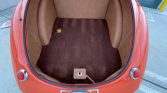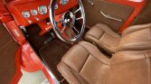 The steel-reinforced fiberglass body said to have been sourced from Antique & Collectible Autos is mounted to a boxed tube frame and has been mini-tubbed at the rear. House of Kolor Tangerine Pearl paint is aLented by polished door handles, lighting surrounds, and 1940 Willys-style front grilles. Additional exterior details include a split-rear window, a retractable antenna, and a single roof-mounted windshield wiper.