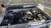 Silver-finished 15″ wheels wear 225/75 Hankook Optima tires that were installed in March 2021. The brake shoes were replaced in December 2020, and the brake lines were replaced a month later. The rear hubcaps are missing.