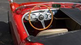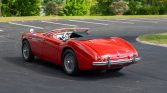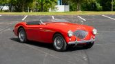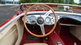 This 1955 Austin-Healey 100 BN1 roadster was built in June 1955 and delivered to the United States, and an owner who reportedly acquired the car in 1966 had the vehicle refurbished in British Columbia, Canada, from 2003 through 2010. Powered by a 2.7-liter inline-four paired with a three-speed manual transmission with overdrive, the car is finished in red over beige upholstery with red piping. Features include dual SU carburetors, 15″ knock-off wire wheels, a removable black soft top,…