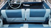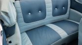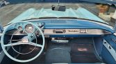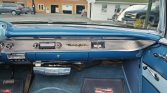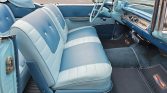 This 1957 Chevrolet Bel Air two-door convertible is finished in blue over a coordinated two-tone interior and is powered by a 283ci V8 paired with a two-speed Powerglide automatic transmission. The car was refurbished at some point under prior ownership and is equipped with a power-operated white soft top, a blue top boot, 14″ steel wheels, power steering, a split-folding front bench seat, and a push-button radio.