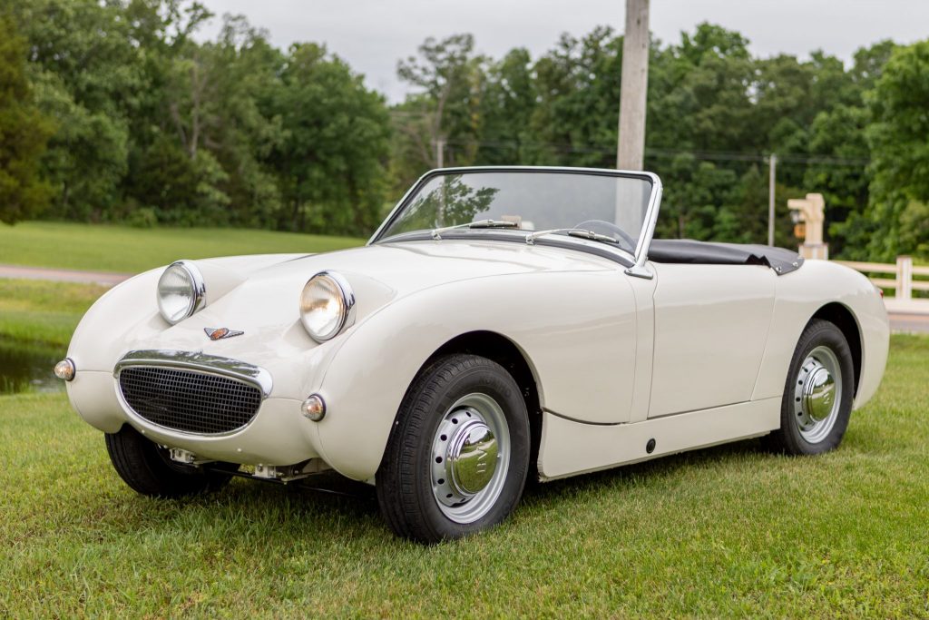 This 1959 Austin-Healey Bugeye Sprite was acquired by the seller in 2014 and was subsequently refurbished and modified. Work reportedly consisted of media blasting and rust repair, a repaint in white, an interior refresh, and overhauls of the suspension and brakes. The car is powered by a replacement 1,275cc inline-four paired with a four-speed manual transmission, and equipment includes front disc brakes, 13″ steel wheels with chrome center caps, a front-hinged hood, rear bumperettes, and a black…