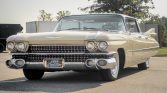This 1959 Cadillac Series 62 is a four-window ‘flat top’ sedan that was acquired by the seller out of New York in 2016 from its reported second owner. Power is provided by a 390ci V8 paired with a four-speed automatic transmission, and the car is finished in Beaumont Beige with a white roof over Fawn upholstery. Equipment includes power-assisted brakes and steering as well as a six-way electrically adjustable front seat, power windows, and a Delco Am…