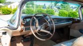 Two-tone Fawn seat upholstery is clad in protective plastic, and contrasting darker carpets and dashboard trim accent the cabin. Factory features include power-operated windows, a six-way power-adjustable driver’s seat, and an AM radio as well as GM’s automatic headlight dimming system called “Autronic Eye” which is retained on the left corner of the dashboard.