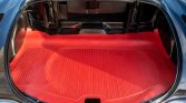 Vinyl upholstery with channeled inserts covers the bucket seats and door panels. Lap belts are equipped for both occupants, and additional features include an analog clock and a dashboard-mounted rear-view mirror.