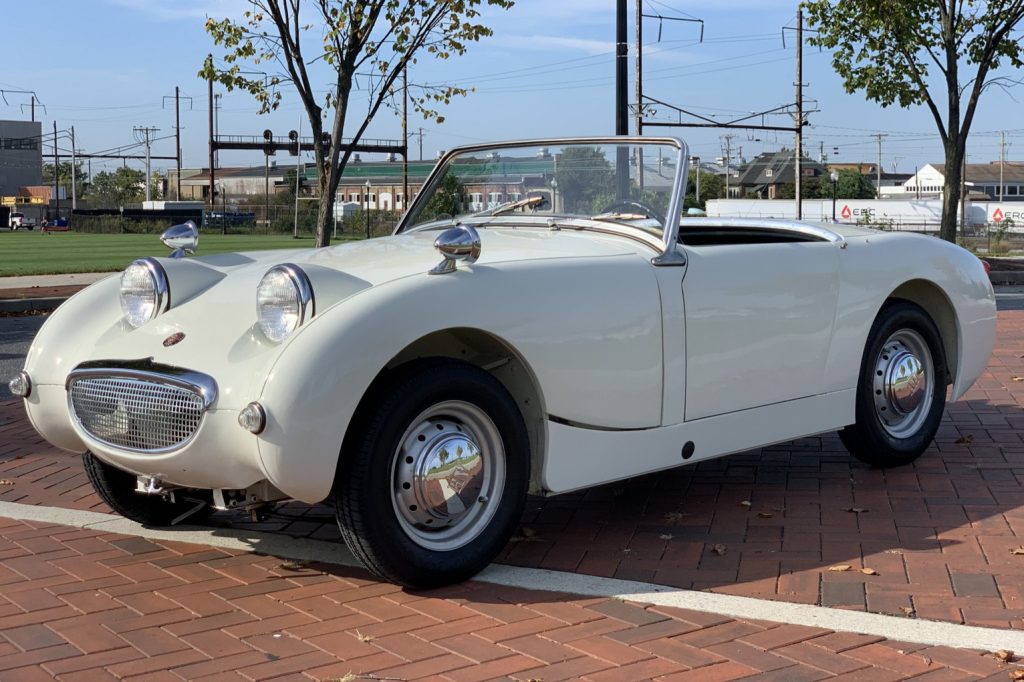 This 1960 Austin-Healey Sprite is said to have spent at least 40 years in Pennsylvania and was reportedly the subject of a 1990s refurbishment that included installation of a replacement 1,275cc inline-four as well as a repaint in white and reupholstery of the interior in black. The car features a four-speed manual transmission, 13″ steel wheels with chrome hubcaps, a tonneau cover, a Blaupunkt cassette stereo, front disc brakes, and fender mirrors. Service performed over the last year is said to have included replacement of the brake master cylinder, rear wheel cylinders, and radiator.