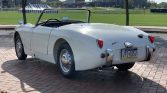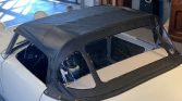 The car is said to have been repainted in its current white sometime between 1992-1995. Equipment includes fender-mounted bullet mirrors, rear bumperettes, a black soft top, and a matching tonneau cover. The front bumper has been removed.