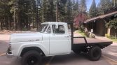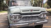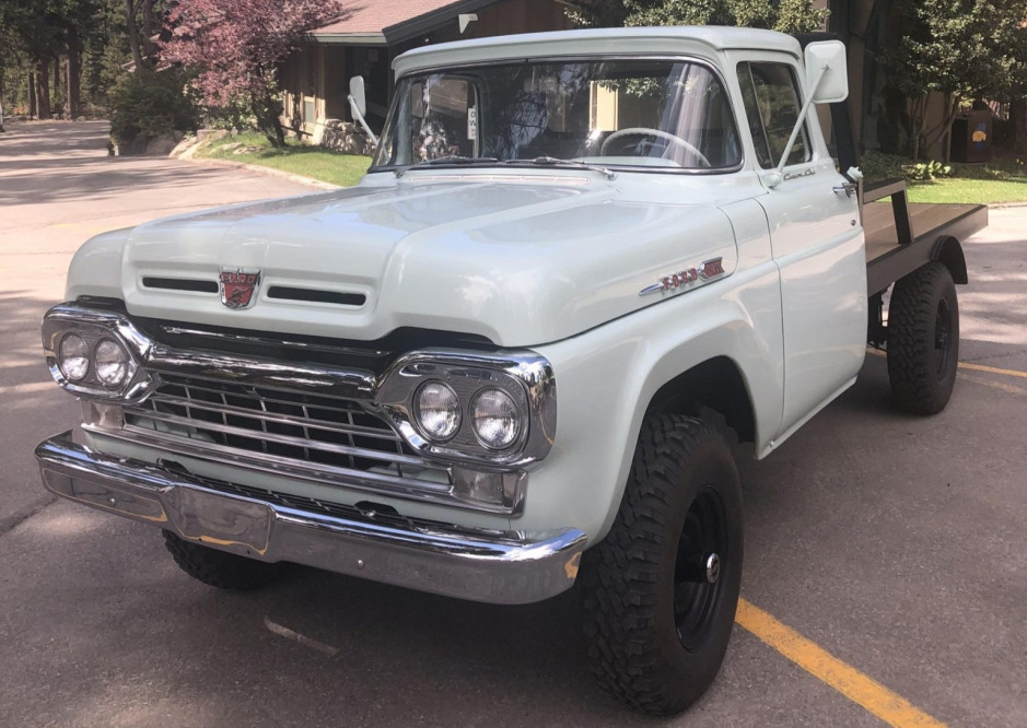 This 1960 Ford F-250 4×4 was acquired by the previous owner in 2000, reportedly from the grandson of its original owner. The truck was subsequently refurbished including a repaint in mint green, fabrication of a flatbed with oak wood planks, and reconditioning of the 292ci V8, three-speed manual transmission, dual-range transfer case, and braking system. Additional equipment includes a heater, a receiver hitch, a Holley carburetor, Warn manually-locking front hubs, and 15″ steel wheels. Maintenance performed in preparation…