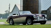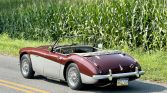 This 1962 Austin-Healey 3000 BT7 Mk II is finished in maroon and gray over a gray interior and is powered by a 2.9-liter inline-six paired with a four-speed manual transmission. Features include a gray soft top, 15″ knock-off wire wheels, servo-assisted front disc brakes, a top boot, a tonneau cover, heated seats, a CD stereo, detachable side windows, a cabin heater, and a Moto-Lita steering wheel.