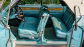 The car was repainted in its factory shade of Riviera Turquoise (D) around 40 years ago, and a dent in a right quarter panel was repaired at that time. Exterior details include a white convertible top, a hood ornament, a driver-side mirror, and rear-hinged rear doors. The convertible top mechanism was rebuilt in 1999, and the rear bumper was re-chromed last year.