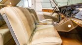 Sandalwood (737) upholstery trims the interior, including the bucket seats, door panels, carpets, and dashboard and console trim. Cabin appointments include wood veneer accents on the center console and door panels, power window controls housed within the full-length armrests, a remote trunk release, air conditioning, and a Buick Sonomatic AM radio unit.