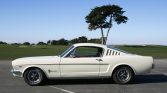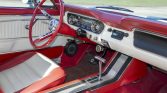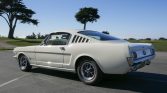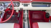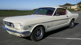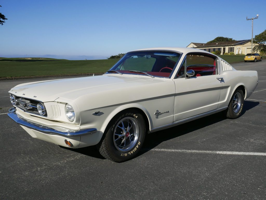 This 1965 Ford Mustang fastback is powered by a replacement Ford Motorsports 302ci V8 paired with a three-speed automatic transmission and is finished in Wimbledon White over red and parchment vinyl upholstery. Equipment includes 14″ styled steel wheels, chrome trim, a GT rear valance, and a center console. Work completed over the past three years included repainting the engine bay, building and installing the engine, refurbishing the interior, and rebuilding the suspension, and brake components.