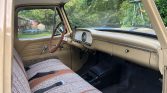 Painted steel wheels wear chrome hubcaps and rings and are wrapped in Hankook Dynapro HT tires. The truck has reportedly been lowered by 3″ and is equipped with aftermarket shocks and front disc brakes reportedly sourced from a 1978 Ford F-150.