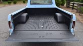 The truck is said to have been refinished in satin light blue and features chrome bumpers and a satin white front grille. Round-chrome mirrors have been added, and dual exhaust outlets exit below the rear bumper. The bed is coated with black spray-in bed liner.