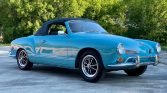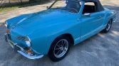 This 1969 Volkswagen Karmann Ghia convertible was first sold in South Dakota and was moved to Wisconsin in 1995. The car is finished in light blue over black leatherette upholstery, and power comes from a 1.5L air-cooled flat-four paired with a four-speed manual transaxle. Features include a black soft top, 15″ EMPI Sprint Star wheels, and chrome pedal covers. Service performed under current ownership included an overhaul of the brake system, a carburetor rebuild, and the installation…