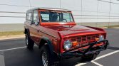 This 1970 Ford Bronco was refurbished and modified by Duffy’s Classic Cars in Iowa and its power is provided by a replacement 302ci V8 linked with a three-speed automatic transmission, a dual-range transfer case, and a limited-slip rear differential, and the truck is finished in burnt orange with a silver removable hardtop. Equipment includes Edelbrock Pro-Flo fuel injection, an aluminum radiator, 15″ alloy wheels, a suspension lift kit, Warn manually locking front hubs, power steering and brakes, and…