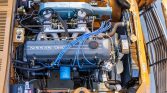 The 2.4-liter L24 inline-six was rebuilt under current ownership, reportedly with refreshments of the carburetors, fuel pump, distributor, and radiator, as well as adjusting the valves and installing hoses, an alternator, water and oil pumps, spark plugs, wires, filters, and gaskets. Various components were zinc plated, the throttle linkage was refurbished, and engine bay stickers were reapplied. The valve cover and airbox were refurbished, and work performed by Nissan included repairing ground issues as well as performing a tune-up and adjusting the timing.