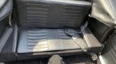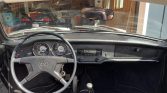 The high-back bucket seats and rear bench seat are upholstered in black vinyl and are joined by a matching dashboard, door panels, and carpets. Features include door pockets and a Blaupunkt AM/FM radio.