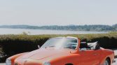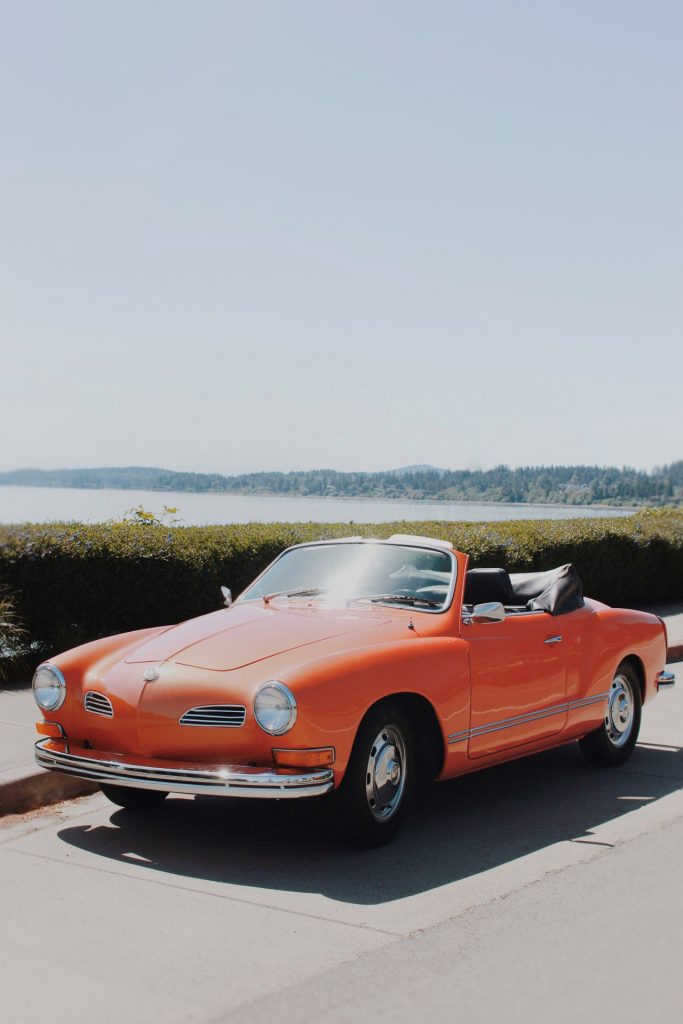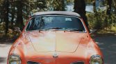 Styled by Carrozzeria Ghia, the bodywork was hand-built by German coachbuilding house Karmann. The car was repainted Burnt Orange during the refurbishment and features a black convertible top, matching top boot, Karmann Ghia badging, dual side mirrors, and chrome bumpers and lower body trim.
