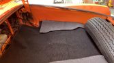 Steel 15″ wheels wear chrome VW hubcaps and are wrapped in steel-belted radial tires. A matching spare mounted with an older whitewall tire is stowed in the front trunk.