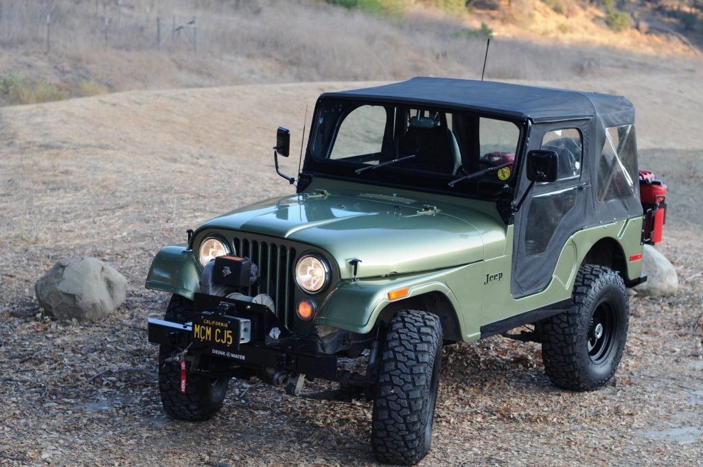 This 1973 Jeep CJ-5 is finished in green with a black soft top over black vinyl, and power is provided by a fuel-injected 258ci inline-six paired with a four-speed manual transmission. Equipment includes a dual-range transfer case, manually locking front hubs, 15″ American Racing wheels, steel front and rear bumpers, a Warn winch, a rear tire carrier with jerry-can holders, a 2.5″ BDS suspension lift, LED lighting, full soft doors, a CB radio, and a six-point roll bar. Service under current ownership included fitting a Mopar fuel-injection system, rebuilding the engine and transmission, replacing the radiator and master cylinder, and servicing the lubricants in the axles, transmission, and chassis.