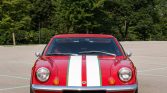 This 1973 Lotus Europa Twin Cam Special was acquired by the seller in 2015, and subsequent refurbishment work included refinishing the exterior in two-tone red and white with metallic green accents, retrimming the interior with black upholstery, and overhauls of the braking and suspension systems. Power comes from a rebuilt 1.6-liter DOHC inline-four mated to a five-speed manual transaxle, and equipment includes a wooden shift knob, Talbot Berlin mirrors, power windows, HRE three-piece 15″ wheels, a burl wood dashboard, replacement carpeting, tubular headers paired with a stainless-steel muffler, and a Bluetooth-capable stereo paired with a custom sound system.