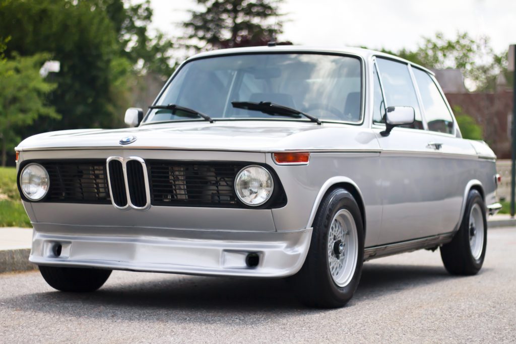 This 1974 BMW 2002 is powered by a fuel-injected 2.0-liter inline-four paired with a four-speed manual transmission and is finished in silver over gray and blue upholstery. Acquired by the seller in 2001, the car has been modified with an engine from a 1973 2002tii, an Ireland Engineering Turbo-style front air dam, European-market turn signals, a Raid Turbo steering wheel, front Recaro sport seats, and a Kenwood CD stereo as well as a fiberglass hood, trunk lid,…