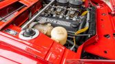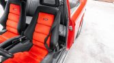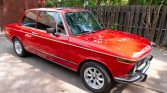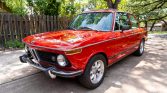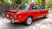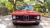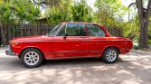This 1974 BMW 2002 is finished in red over black and red cloth, and it is powered by a 2.7-liter M20 inline-six equipped with triple Weber carburetors and tubular exhaust headers. Shifting is through a five-speed manual transmission, and other modifications include 14″ Panasport wheels, Euro-style chrome bumpers, Bilstein shocks and struts, Suspension Techniques HD springs, BMW 2002 tii-style front brakes, Recaro front seats, VDO auxiliary gauges, and a JVC head unit.