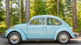 This 1974 Volkswagen Beetle was purchased new from Pete Lovely Volkswagen of Fife, Washington by the seller’s grandmother, was sold to an acquaintance in 1980 after her passing, and then acquired by the seller in 1985. The car is finished in blue over a white interior and is powered by a 1.6L flat-four paired with a four-speed manual transaxle. Equipment includes silver 15″ steel wheels with chrome hub caps, dual exhaust outlets, chrome bumpers and trim, and three-point front seat belts. Service in September 2020 included a valve adjustment and an engine oil change.