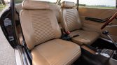 The cabin features front bucket seats trimmed in beige vinyl with matching door panels and black carpets. Woodgrain trim aLents the dash, and amenities include shoulder belts for front oLupants, a Veglia analog clock, Blaupunkt AM radio, and an under-dash air conditioner that is said to have been converted to R134a refrigerant.