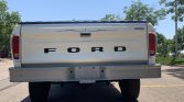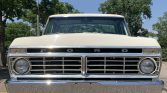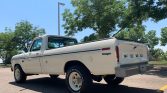 This 1975 Ford F-250 Ranger is a standard-cab pickup that is finished in white over gray cloth and vinyl and is powered by a 390ci V8 paired with a three-speed automatic transmission. Equipment includes 16″ painted steel wheels, towing mirrors, an aftermarket JBL stereo, chrome trim, a tonneau cover, and a Dana 60 rear axle.