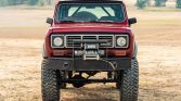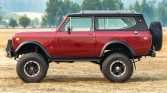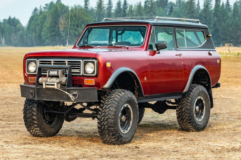 This 1975 International Harvester Scout II was modified by its previous owner and is powered by a replacement 392ci V8 mated to a three-speed automatic transmission and a two-speed transfer case. Following the seller’s acquisition in 2020, the truck was refinished in metallic red over a black and gray interior. Additional equipment includes a removable hardtop, fender flares, a spring-over-axle suspension lift, a six-point roll cage, ARB Air Lockers, 17″ Incubus wheels, and front disc brakes.
