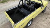 This 1976 International Harvester Scout II is finished in yellow with a removable white steel roof, and power is provided by a rebuilt 304ci V8 paired with a four-speed manual transmission and a dual-range transfer case. Equipment includes a bull bar, driving lights, three-point front seatbelts, a padded roll bar, 15″ wheels with 31″ tires, and a Pioneer CD stereo. The truck was purchased by its current owner in 2009 and was recently relocated to Connecticut by the seller.