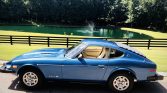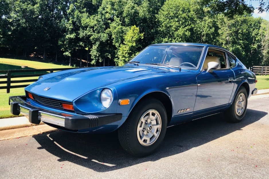 This 1977 Datsun 280Z reportedly remained with its previous owner for 42 years before being recently acquired by the seller. The car is finished in blue over cream vinyl upholstery, and power is provided by a 2.8-liter inline-six paired with a four-speed manual transmission. Equipment includes air conditioning, an aftermarket cat-back exhaust system, rear window louvers, and bodyside moldings.