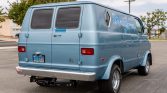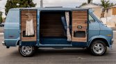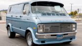 This 1977 Dodge Tradesman B200 is finished in blue over a blue cloth interior and is powered by a 318ci V8 paired with a three-speed automatic transmission. Features include a custom grille, 15″ aftermarket wheels, rectangular-shaped side windows, a rear bench seat, window curtains, wood paneling in the rear compartment, an aftermarket stereo system, a backup camera, and “Dream Maker” hand-painted graphics. The seller acquired the van from the reported original owner in 2019, and service within…