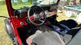 This 1978 Jeep CJ-7 was refinished in red metallic and fitted with a 5.3-liter GM V8 that is equipped with an ICT Billet intake manifold, a CVF Racing serpentine system, Hedman exhaust headers, and a Borla dual exhaust system. Power is sent to the rear or all four wheels through a three-speed TH350 automatic transmission and a dual-range transfer case, and additional features include power steering, power-assisted front disc brakes, gloss black 20″ Fuel Stroke wheels, double tube bumpers, iArmor side steps, LED exterior lighting, a Smittybilt XRC winch, a roll bar, and a black bikini top. The interior has been outfitted with black leather and microsuede Sparco GT bucket seats, air conditioning, a B&M Pro Ratchet shifter, a Pioneer touchscreen head unit, aftermarket speakers, Recoil Audio subwoofers, and AutoMeter instrumentation.