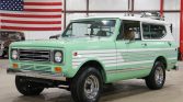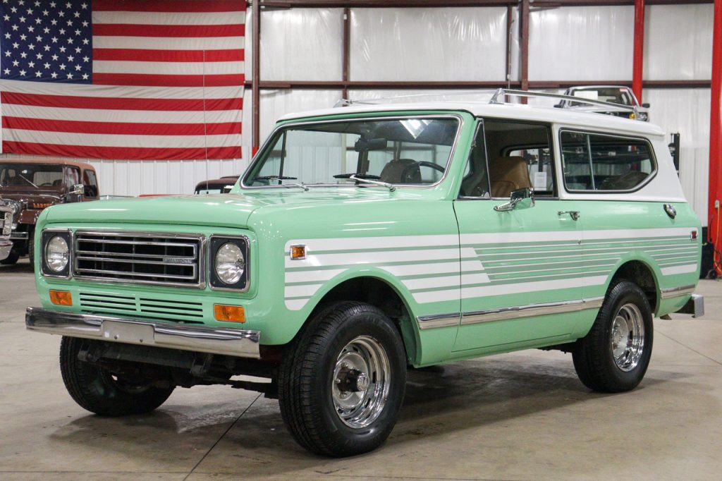 This 1979 International Harvester Scout II is finished in green with a white removable hardtop and white side graphics and is powered by a 345ci V8 paired with a three-speed automatic transmission and a dual-range transfer case. Equipment includes locking front hubs, an AM/FM stereo, 15″ Rallye wheels, a luggage rack, and air conditioning. Maintenance reportedly performed two years ago included refurbishing the air-conditioning system and changing fluids.