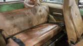 The interior features tan vinyl upholstery with matching carpets and a two-tone dashboard. The air-conditioning system is said to have been rebuilt two years ago, and additional features include an AM/FM stereo, cruise control, a center console with cupholders, and a fold-down rear bench seat.