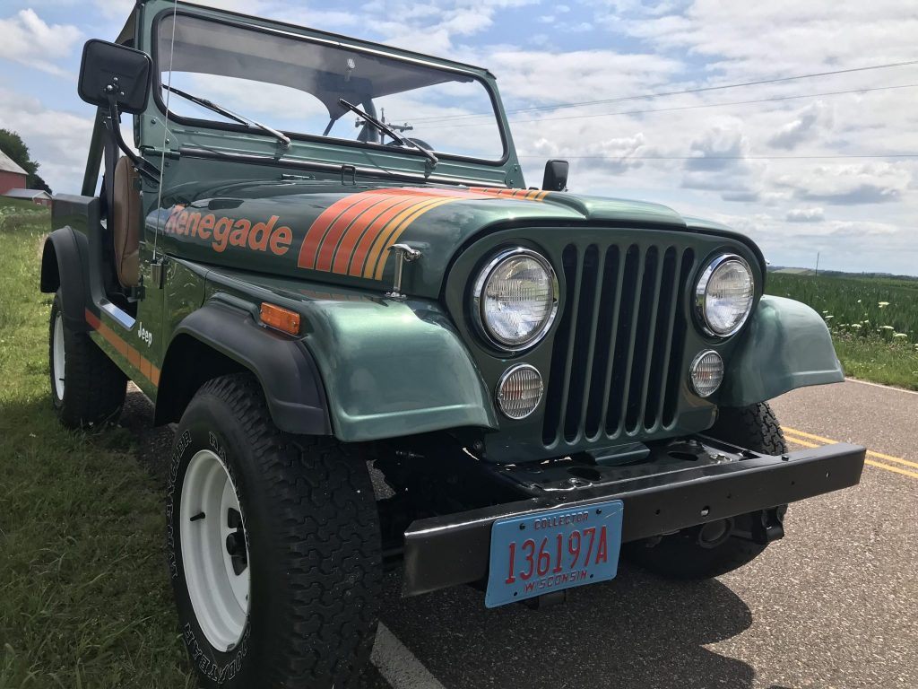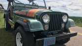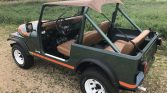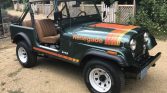 This 1979 Jeep CJ-7 is finished in metallic green over tan vinyl and is powered by a 304ci V8 linked to a three-speed automatic transmission, Quadra-Trac full-time four-wheel drive, and a dual-range transfer case. Equipment includes 15″ steel wheels, power steering, power brakes, wheel arch flares, tan cloth doors, aftermarket speakers, a locking center console, a roll bar, and a tan bikini top. The seller acquired the truck in 2017 following a refurbishment which is said to have included replacing the body tub, refinishing the exterior and frame, reupholstering the interior, and rebuilding the engine, transmission, transfer case, fuel system, steering system, braking system, and electrical system.