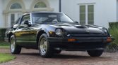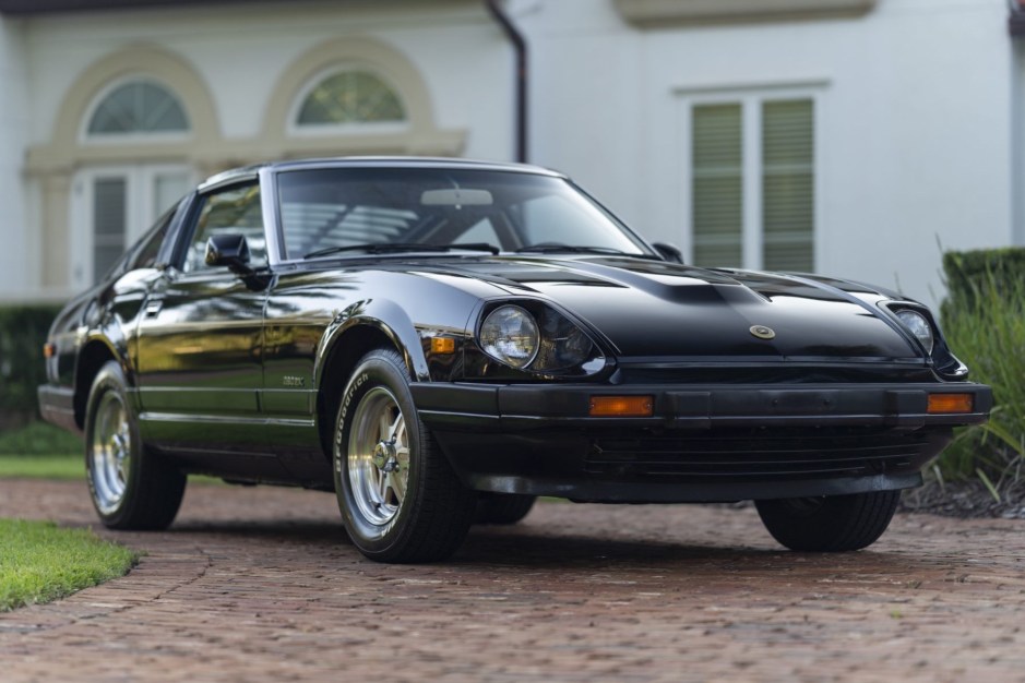 This 1982 Datsun 280ZX shows 47k miles and is finished in Thunder Black Metallic with gold pinstripes over tan leather and cloth upholstery. Power comes from a 2.8-liter inline-six mated to a five-speed manual transmission, and the car was optioned with the Grand Luxury trim package, which added 14″ six-spoke aluminum wheels, power steering, a rear window wiper, cruise control, and power windows and locks. Additional details include removable T-top roof panels, rear window louvers, automatic climate control, and an AM/FM/cassette stereo.