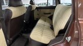 The front bucket seats and a folding rear bench are upholstered in patterned tan cloth with brown vinyl sides. Equipment includes air conditioning, a center console, a rear window defroster, and a Blaupunkt stereo linked to aftermarket speakers. The selling dealer reports the air conditioning system has been converted to utilize R134a refrigerant, and the driver’s seat was reupholstered in June 2011.
