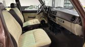 This 1984 Toyota Land Cruiser FJ60 was modified with a 2″ lift kit, an Old Man Emu steering stabilizer, 16″ Braid wheels, Sylvania headlights, a roof rack, and a Blaupunkt stereo linked to aftermarket speakers. The truck is finished in brown over tan and brown upholstery and is powered by a 4.2-liter 2F inline-six linked with a four-speed manual transmission and a two-speed transfer case.