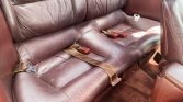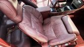 The interior houses seats trimmed in burgundy leather along with a matching dash, door panels, and carpeting. Amenities include Turbo-branded automatic-retracting front seatbelts, power windows, a cassette stereo with a graphic equalizer, automatic climate control, and a digital clock.