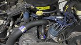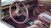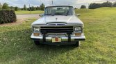 This 1988 Jeep Grand Wagoneer is finished in white with faux-wood paneling over a burgundy leather and cloth interior, and it is powered by a 5.9-liter V8 paired with a three-speed automatic transmission and a dual-range transfer case. Equipment includes 15″ alloy wheels, a roof rack, fog lights, power-adjustable front seats, power windows and locks, and a cassette stereo.