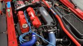 This 1988 Lancia Delta HF Integrale was acquired by the seller out of England, imported to the US in November 2020, and subsequently campaigned in the three-day June 2021 Lewis & Clark Classic Rally in Oregon. The car is finished in red over a gray interior with striped cloth inserts, and power is from a turbocharged 2.0L eight-valve inline-four that drives all four wheels through a five-speed manual gearbox. Additional equipment includes 16″ Speedline wheels, adjustable BC…