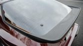 The body is finished in Maraschino Red Metallic and features a removable sunroof, a rear spoiler, pop-up headlights, and integrated fog lamps. The seller states that the driver-side door was repainted after being damaged, and the front bumper cover was recently refinished. Faded clear coat is noted on the roof, and there are touched-up paint chips on the body.
