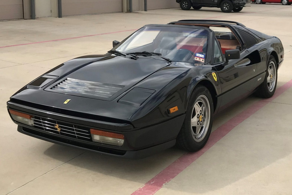 This 1989 Ferrari 328 GTS is one of 1,089 examples produced for the final model year and is finished in black over black leather. Power is supplied by a 3.2-liter V8 paired with a five-speed manual transaxle, and equipment includes a removable black roof panel, polished 16″ wheels, air conditioning, a gated shifter, power windows, and an Alpine stereo.